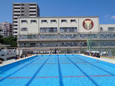 そして、午後は2年生のプール...晴れの日の校舎とプールは絵になりますね(@_@)