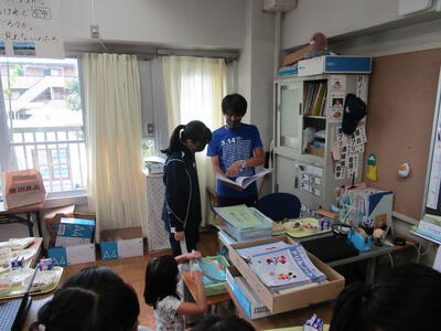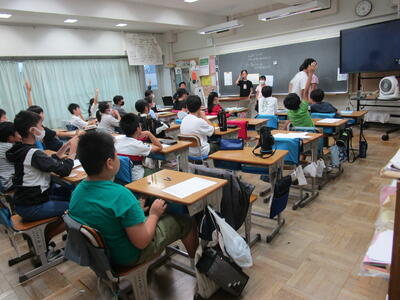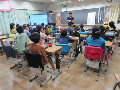 宮田小に社会人アメリカンフットボールチーム「ブルーサンダース」の皆様が!