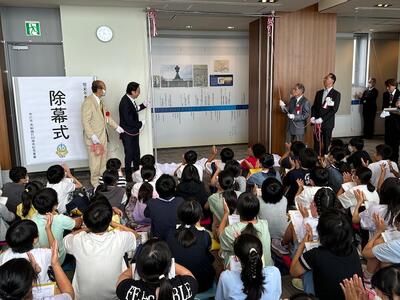 寄贈された方をはじめとするご来賓の皆様による序幕!そして大きな拍手!!写真では一部しか見えていませんが、奥の壁一面がすばらしい年表となっていました(@_@)