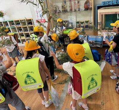 上学年の子が下学年の子を送っているところでした...