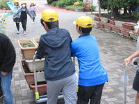 朝、雨の合間をぬってお手伝いしてくれる宮田っ子!