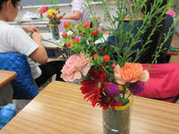 フラワーアレンジメントづくりに夢中の宮田っ子!