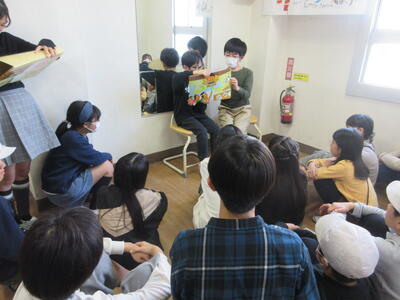 廊下の「ホッ」とする場所では、図書委員会のみんなが読み聞かせを