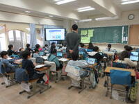 5年生はタブレットを使って学び合い!