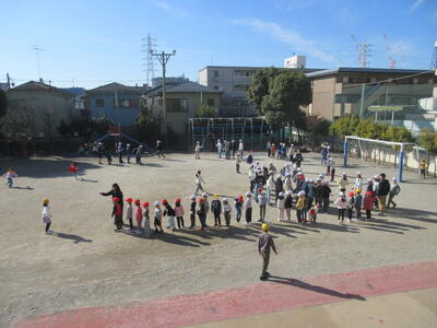 今日の朝スポは兄弟学年での長縄!