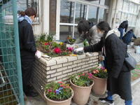 また、生徒用昇降口や職員玄関前の前、正門外の花壇の整備もしてくださいました。
