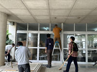 残暑が続く中、妙典中生が快適に活動できるようにと、特別教室のエアコンを中心にフィルター掃除を行ってくれました。