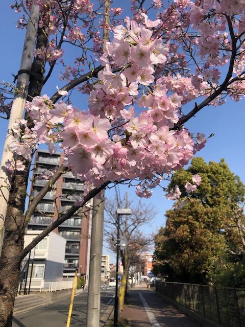 今日は天気に恵まれていますが、冷たい風が吹いています。校長室の窓から見える河津桜も、少しずつ花を咲かせ始めました。春の訪れを感じる光景です。
