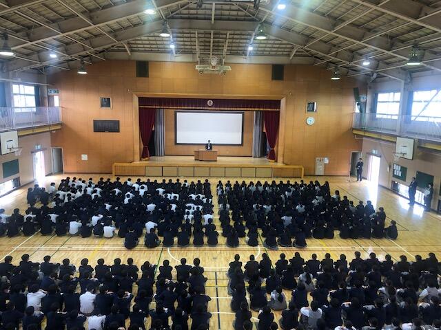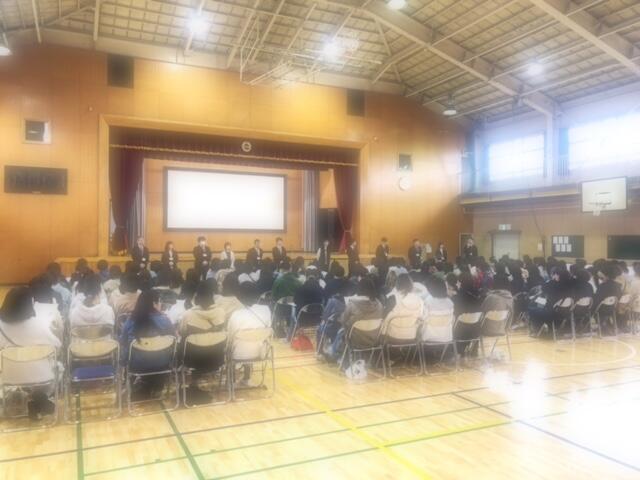 集会では、教務主任から学校生活や卒業式に向けた心構えについてお話がありました。また、3年生の代表生徒3名が、勉強や部活動、受験について、自らの経験をもとに1・2年生に向けて語ってくれました。皆さんにとって、これからの学校生活をより充実させるための貴重な学びとなったことでしょう。