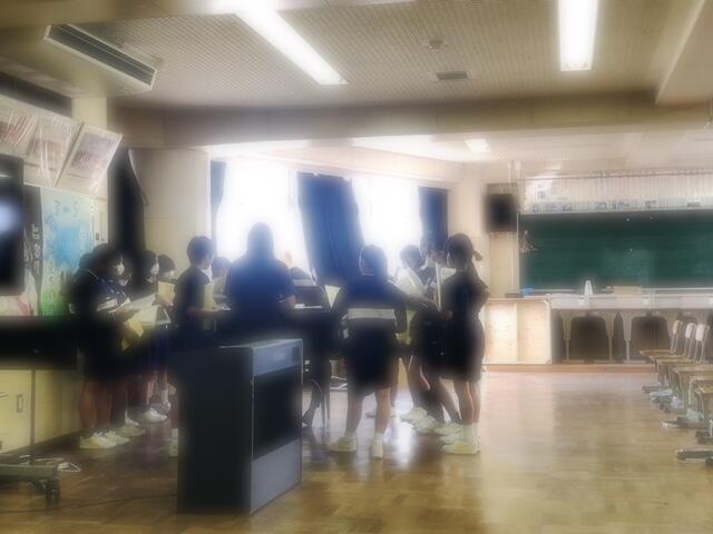 今日は3年生が体育館で、1・2年生は教室にいながらオンラインで開催しました。3年生だけの校歌合唱でしたが、体育館に響き渡る校歌に感動しました。