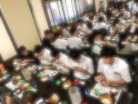 本日、3年生にとって最後の給食の日を迎えました。今日のメニューは、麦ご飯、牛乳、カレー、ヒレカツ、ひじきのマリネ、フルーツヨーグルト。人気のカレーということもあり、ご飯を山盛りによそっている生徒も多くいました。