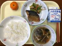 今日の給食は、「グリーンピースご飯」、牛乳、鯖の塩こうじ焼き、切り干し大根とあさりの含め煮、じゃが芋の味噌汁でした。