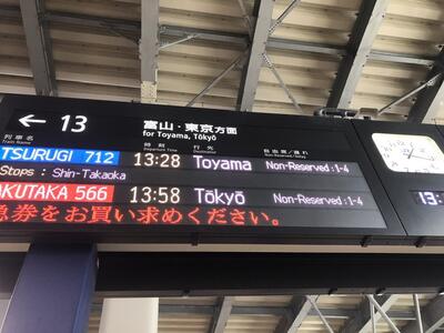 北陸新幹線の車窓からは、綺麗な立山連峰を眺めることができました。