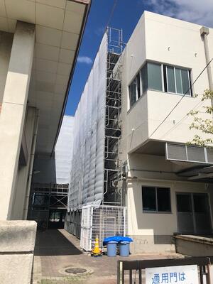 さて、今日から2学期がスタートしました。夏休み期間中に部活動で登校した生徒は、校舎のまわりで行われていた外壁補修工事を見ていたため驚きはなかったと思いますが、今日初めて見た人は驚いたかもしれません。外壁補修工事および屋上防水補修工事の実施にあたっては、外壁に面して足場を組むことから、かなり大がかりな工事となります。夏休み期間中に多くの部分を集中的に行いましたが、補修工事の工期は12月16日までを予定しております。生徒の皆さんは、工事現場には決して入らないようにお願いします。