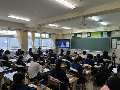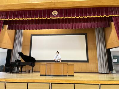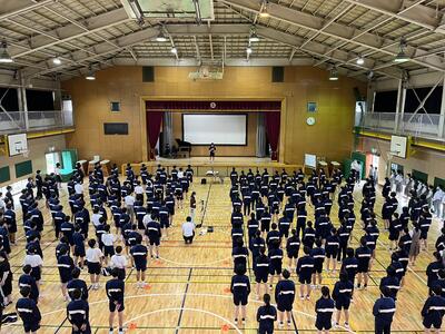 6月21日(火)、1学期期末試験が終わった3校時に、第2回の全校集会が行われました。感染症対策のため、3年生は体育館、1・2年生とみのり学級はリモートでの実施となりました。