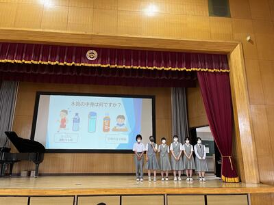 保健委員会は、熱中症対策について、映像やスライドを用いながらわかりやすく説明を行ってくれました。みのり学級の川本先生からは、自分自身を認めることの大切さについて、「小さなことでも自分を褒めてあげましょう」というお話がありました。