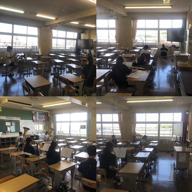 校舎内の4階では吹奏楽部がパートごとに分かれて教室で練習をしていました。