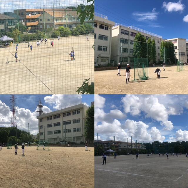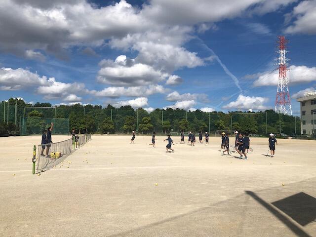 8時半頃、グラウンドではソフトテニス部の女子と野球部が活動していました。ソフトテニス部の女子は第8中学校と練習試合をしていました。