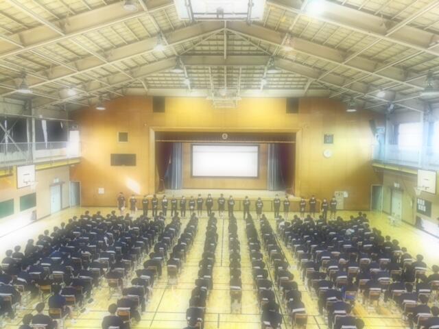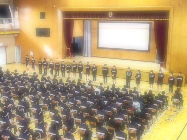 私からは2点、本校の教育目標である「ふれあいを大切にする生徒」において、「挨拶だけではなく、相手を思いやる気持ちをもって、人間関係を築くことのできる生徒」になってほしいということと、2点目は、「頑張り抜く生徒」において、「目標に向かって努力する生徒」になってほしいとお願いしました。