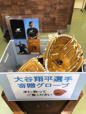 職員玄関には、昨年話題となった大谷翔平選手からのグローブが展示されていました。大谷選手は日本国内のすべての小学校に対し、右利き用2つ、左利き用1つを寄贈しており、本人の写真や「野球しようぜ!」といったメッセージが添えられていました。興味を持ってグローブを手に取ってみましたが、小学校用のため、私には小さかったです。