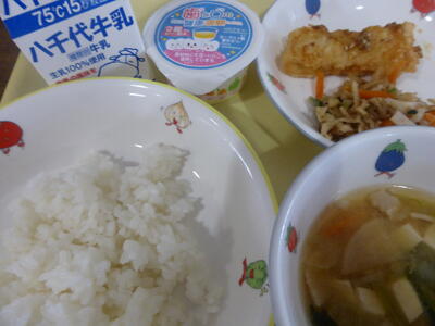 牛乳はカルシウムが豊富 で骨 を強 くする働 きがあります。またカルシウムは身長 をのばすためにはかかせない栄養素 です。牛乳は「これからおなかにたべものがはいりますよ!」の合図といていただきますの後に一口飲むのがおすすめです!ぜひきょうからチャレンジしてみてください!