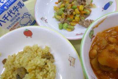 "今日は明日の運動会にちなんだ運動会応援メニューです。