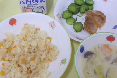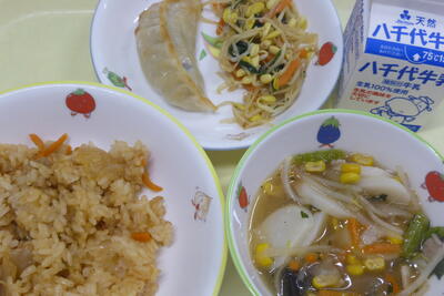 今日のきゅうしょくも1口30回を目標によくかんでおいしくいただきましょう!