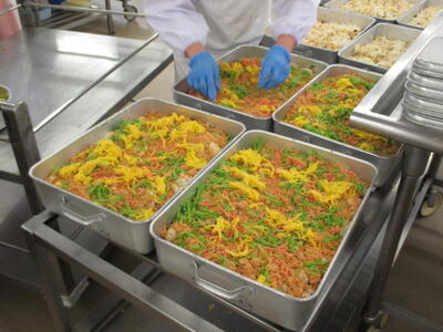 ごもくあんかけどんに使っている豚肉にはごはんなどの消化を助けて、エネルギーに変える役割があるビタミンB1が含まれています。