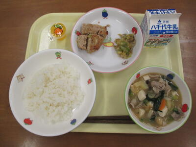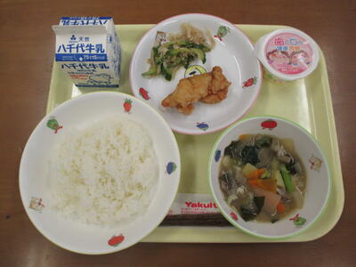 今日の献立のとりにくのからあげは妙典小学校の給食の中でも人気のメニューの一つです。