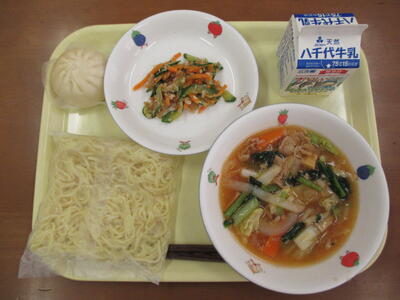 ・こまつなとぶたにくのあんかけそば・くらげのちゅうかあえ