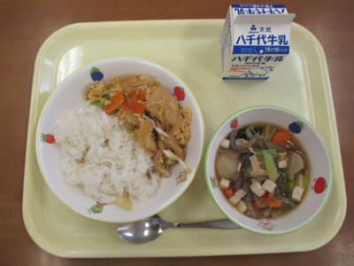 ・たまねぎととうふのみそしる・ぎゅうにゅうです。
