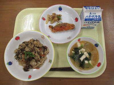 ・ひじきごはん・さけのたつたあげ・はくさいのおかかあえ