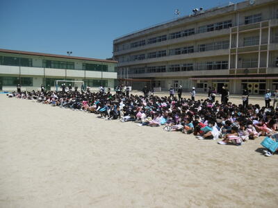 新年度、初めての避難訓練を実施しました。今回は、大地震発生後の火災と津波を想定した訓練です。全校児童が校庭への避難を完了するまでにかかった時間は、6分24秒!「おかしも」の約束(おさない、かけない、しゃべらない、もどらない)をしっかり守って、すばやく安全な避難ができました。続く津波避難では、先生の指示に従って、全校児童が校舎4階まで避難しました。妙典小は、川や海に近く、海抜約6mの低い場所に立地していますので、子どもたちもより真剣に取り組んでいました。自然災害は、いつ、どこで起こるのか、予測困難です。だからこそ、日頃の訓練と心がけが何よりも大切ですね。本校では、児童の安全確保と危険回避能力育成の観点から、年間4回の避難訓練と引き渡し訓練を計画的に実施しています。