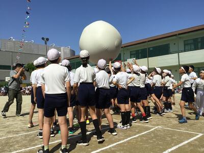 今日は、全校児童が一緒になって、応援団をリーダーに、応援合戦や大玉送りを行いました。このような競技に取り組むのは、実に4年ぶり!1~4年生にとっては、どれも初体験です。青空の下、元気いっぱいに応援歌を歌ったり、目の前の騎手に合わせてウェーブで高く飛び跳ねたり、1年生より大きな大玉を力を合わせて運んだり、みんなの笑顔がはじけて輝いていました。運動会が、ますます楽しみになった子どもたちです。