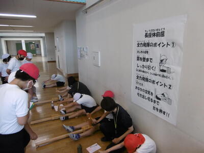 子どもたちがチャレンジしているのは、「握力」「上体起こし」「長座体前屈」「反復横跳び」「20mシャトルラン」「50m走」「立ち幅跳び」「ソフトボール投げ」の計8種類!自分の記録更新を目指し、目標達成に向けて、一生懸命取り組んでいます。どんなふうに測定するのか、ぜひお子さんにやり方を聞いてあげてください。