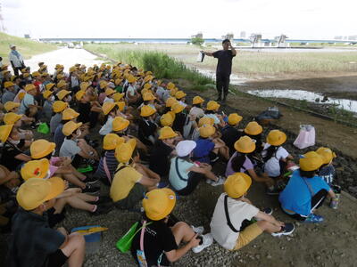 3年生が総合的な学習の時間に、江戸川放水路にある干潟の散策に出かけました。子どもたちは、地域学校協働活動推進員である安達宏之さんから「干潟の生き物」について教えていただきながら、実際に干潟に入って、生息している生き物を夢中になって見つけていました。干潟は、生物多様性の宝庫。子どもたちは、虫かごやシャベルを手に持ち、次々に生き物を見つけては大はしゃぎ!ぬかるみも気にせず、干潟の奥まで歩いて探索範囲を広げます。特に、大小いろいろな種類のカニやトビハゼを発見すると、大事そうに捕まえてその特徴などをじっくりと観察していました。