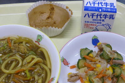 今日の給食では、噛(か)みごたえのある「いか」や、切干大根を使用しました。噛むことを意識して食べてみましょう