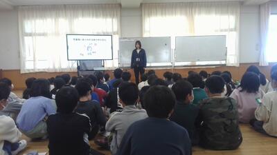 2年生は、千葉県助産師会の助産師の方、2名をお招きして「学校保健講演会」を行いました。