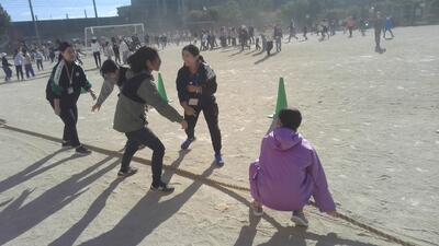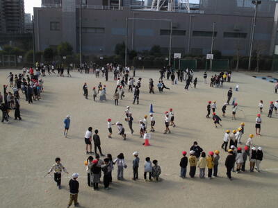 現在、代表委員会が企画した玉入れ大会を行っています。