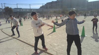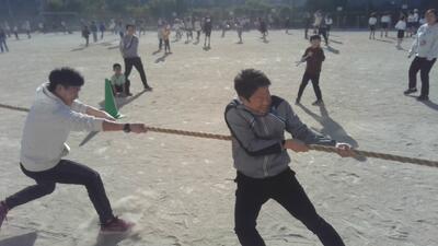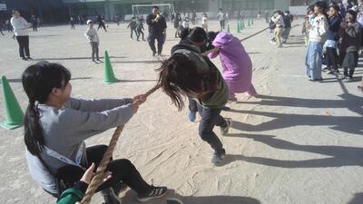 代表委員会主催のミニ運動会「綱引き大会」の決勝戦が行われました。