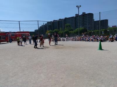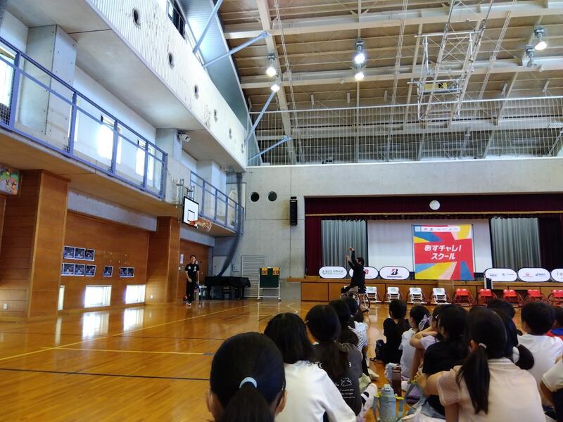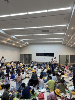 お昼は、お隣の大和田小学校の体育館をお借りして、お弁当を食べました。