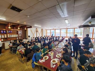 ハイキングで腹ペコの6年生…おいしくたくさんいただきましょう!