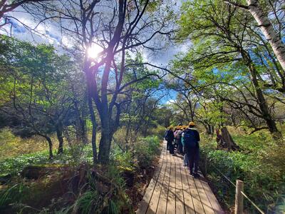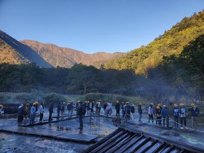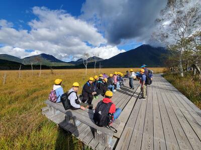 朝のお散歩です。源泉と湯ノ湖に行きました。他の学校もいて混雑している場所もありましたが、妙典小の最高学年らしくマナーを守って気持ちよく過ごせました。