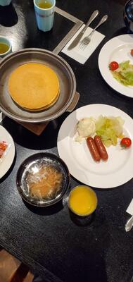 朝食タイムです。みんなの投票で決まった、洋食献立です。
