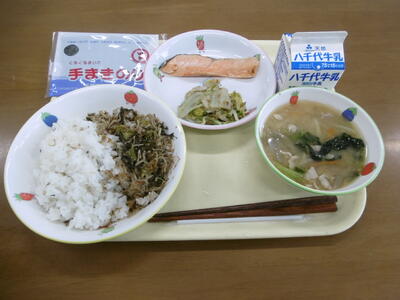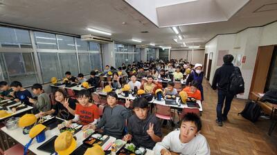 本校では、11月7日~12月8日までを秋の読書月間と定めて、子どもたちが本に親しみ、読書の楽しみを味わえるよう、図書委員会が中心となり様々な取り組みが行われます。「お話給食」もその一つ。今日のお昼の放送の様子です。「こんにちは。図書委員会です。11月は4回、お話給食があります。絵本の中に出てくるメニューが給食に登場します。今日は、その1回目です。「おにじゃないよ、おにぎりだよ!」というおにぎりが大好きな鬼のお話です。鬼は、あることがきっかけで人間のためにおにぎりを作ります。そのおにぎりは、人間に食べてもらえるのでしょうか?続きが気になる人は、ぜひ、図書館にきて本を探して読んでみてください。鬼に負けないおいしいおにぎりを作ってくださいね。」子どもたちは、思い思いの具をのせて、手巻きおにぎりを作っては、笑顔でほおばっていました!