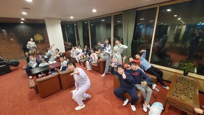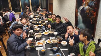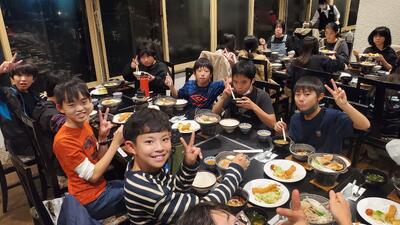 朝食をいただき、荷物をまとめて退館式です。お世話になったホテルの方々に感謝感謝です。お礼の気持ちをこめて、急遽「僕らの未来へ」の歌をプレゼント♪素敵な思い出になりました。