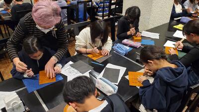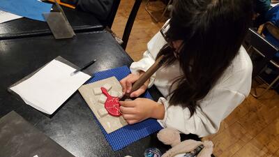ホテルに戻り、日光彫り体験です。上手にできるかな??