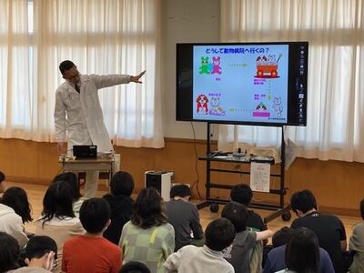 「そうだ、図書館へGO!」を合言葉に、図書委員会が中心となって、様々な読書活動を行っています。図書委員会による「読み聞かせ」や「お話給食」、「読書クイズ」や「お話迷路」などの楽しい企画が満載!休み時間になると、子どもたちは、スタンプラリーカードを手に、学校図書館へGO!「読書クイズ」では、「モグラのつめは何本でしょう?①3本②5本③10本」、「一番長生きするのはどれでしょう?①ゾウ②カメ③キリン」など、友だちと一緒に図書館にある図鑑で調べながら、回答しています。スタンプを6個集めると、借りられる本が一冊増える「プラス一冊券」がもらえます。子どもたちは、プラチナ・チケットをゲットしようと、夢中になって取り組んでいます。