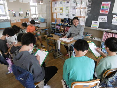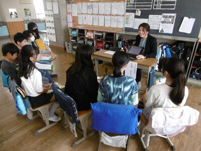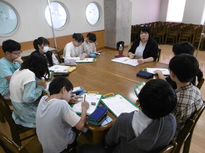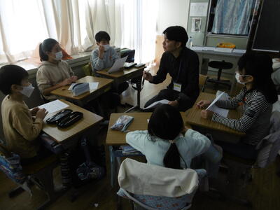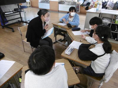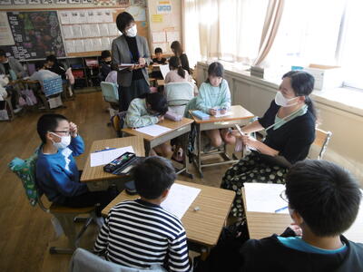 道徳授業の一環として、今年度2回目の「学校支援実践講座」を4年生で実施しました。子どもたちは、架空の事例をもとに、トラブルの原因や解決策を考えながら、「人との関わり方」について、グループ内で感想や意見を交流していきます。各グループには、地域支援者の方々が加わってくださり、子どもたちの感想や意見にじっくり耳を傾けながら話し合いをうながし、時にアドバイスもしてくださいます。子どもたちは、友だちの考えにうなずきながら、真剣に話し合い、自分の考えをより深めていました。本校では、人権教育の一環として、2・3年生で「人権教室」を、4・5年生で「学校支援実践講座」をそれぞれ計画的に実施し、相手の気持ちを考えることや一人一人の違いを認め合うことの大切さを学んでいます。