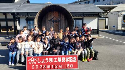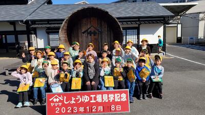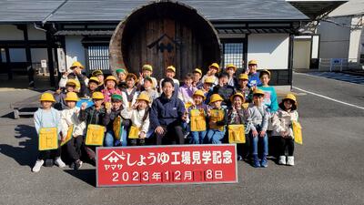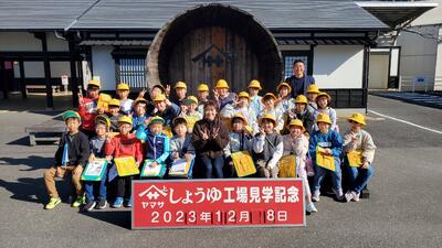 集合写真をとりました。千葉県の地場産業について学びを深めることができました。どこからともなく「なるほど、しょうゆ~ことか~」と納得の声が聞こえたような…。